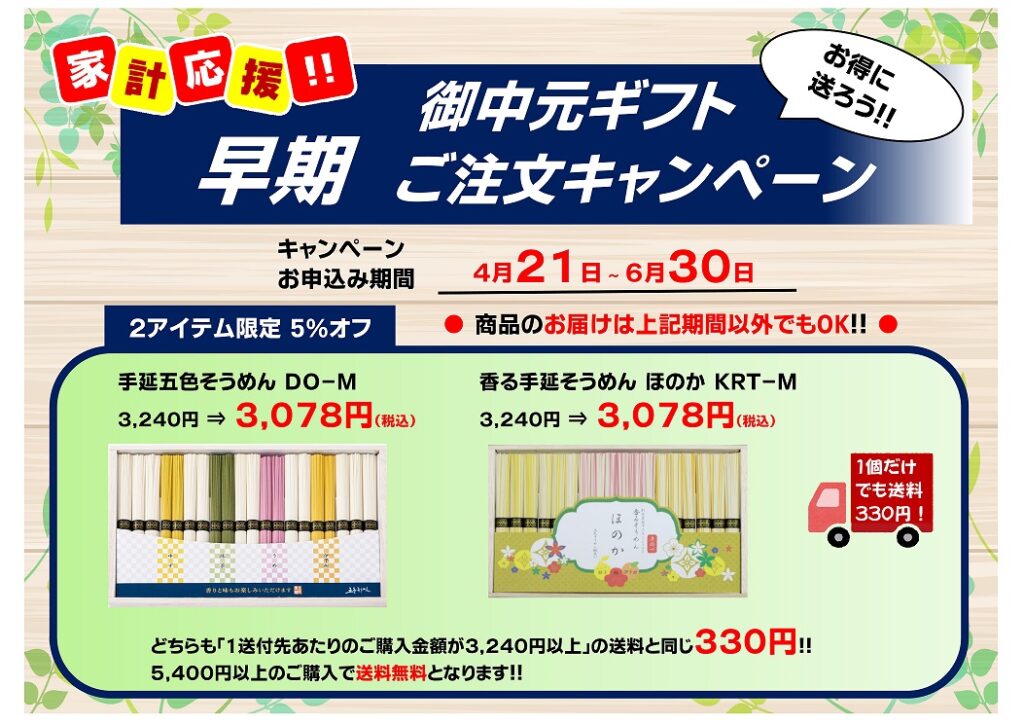 4月21日より、五色そうめんオンラインショップにて、御中元の受付が始まりました。